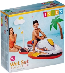 Bouée ludique et sûre pour enfants en forme de scooter de la marque INTEX, offrant stabilité, assise confortable et poignée pratique pour une prise sûre. Grâce à sa large conception, elle ne se renverse pas pendant le jeu, se gonfle facilement et, une fois dégonflée, tient dans un sac de plage. Idéale pour la piscine, le lac et les eaux calmes.