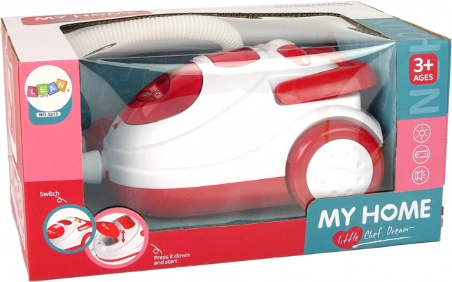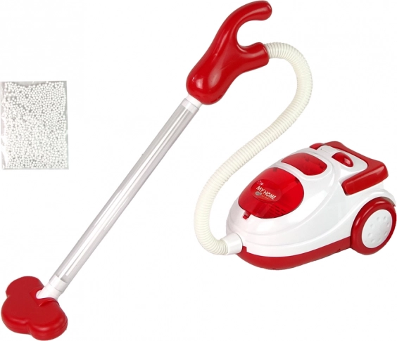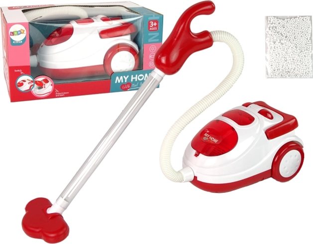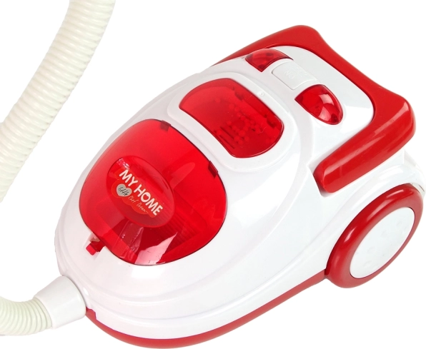 L’aspirateur pour enfants MY HOME rouge et blanc, avec roulettes, boutons et tuyau, imite fidèlement un véritable appareil. Il est léger, facile à prendre en main et simple à utiliser même pour les plus petits.