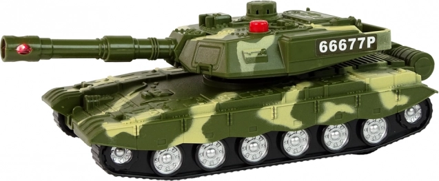 Ce char richement détaillé séduit par son mécanisme à inertie pour avancer et reculer, sa capacité à tourner sur place et son canon mobile. En appuyant sur le bouton rouge, il s’anime avec des effets lumineux et sonores de moteur et de tir, créant une atmosphère authentique de mission.