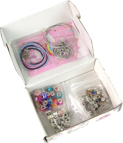 Contient tous les éléments nécessaires pour créer des bijoux : perles, charms et bracelets.