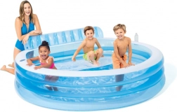 Dans les coins de la piscine se trouve un banc confortable avec dossier, offrant une assise stable et agréable pour adultes et enfants.