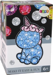Le set comprend un support spécial sur lequel vous exprimerez vos talents décoratifs à l’aide de deux sachets de cristaux colorés. La colle spéciale garantit que les strass restent en place et forment un ornement magnifique. Décorez votre chambre et stimulez votre créativité !