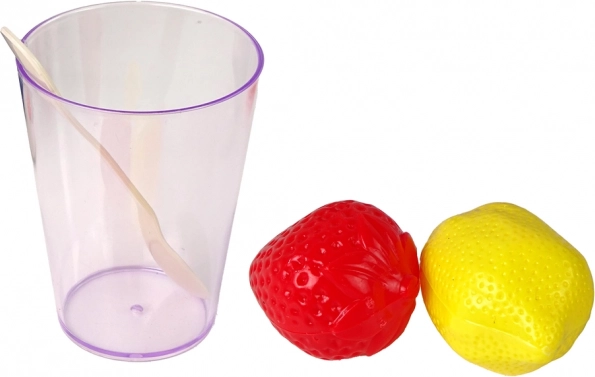 Inclus : tasses, sous-tasses, verre, cuillère et adorables fruits – fraise et citron – pour un service stylé.
