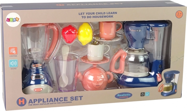 Découvrez une cuisine ludique pleine de fantaisie ! Ce set de cuisine pour enfants combine une cafetière et un mixeur de 16 cm de hauteur avec des effets lumineux et sonores, complétés par des tasses, sous-tasses, un verre, une cuillère et des fruits pour un jeu encore plus réaliste. Idéal pour le développement de la créativité, de la motricité fine et des jeux de rôle.