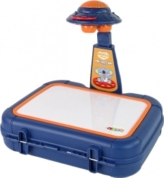 Ce projecteur de dessin interactif dans une pratique valisette bleue permet aux enfants de projeter des images depuis des disques thématiques (animaux, vêtements, balles, fruits, légumes, moyens de transport) sur une surface blanche et de les décalquer facilement. Le support réglable aide à adapter la hauteur de projection pour un dessin toujours confortable et net.