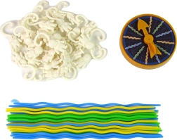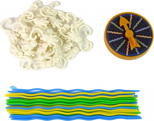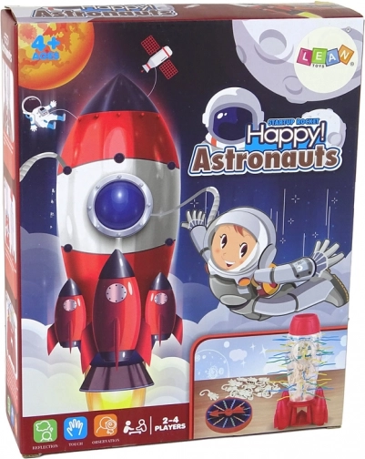 Commencez la partie en assemblant la fusée et en plaçant les tiges dans les trous correspondants. Les astronautes, lâchés depuis le sommet de la tour, s’accrochent aux tiges grâce aux parties en relief de leur combinaison. Une fois tous les astronautes en place, le divertissement peut commencer. Le premier joueur fait tourner la roue pour tirer une couleur de tige. Il doit ensuite retirer avec précaution la tige de la couleur indiquée en essayant de ne pas faire tomber les astronautes.