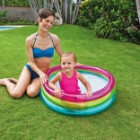 La piscine gonflable pour enfants INTEX Rainbow est un accessoire coloré et pratique pour les journées d’été. Grâce à ses trois anneaux transparents, elle est stable et confortable, tandis que ses dimensions compactes 86 × 25 cm conviennent à la plupart des jardins, terrasses et balcons. Sa capacité de 68 litres avec une hauteur d’eau recommandée de 17 cm offre une zone aquatique peu profonde et sécurisée pour les tout-petits.