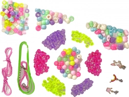 - Trois fils roses, un cordon vert et trois breloques : permettent de créer des bracelets et colliers personnalisés.