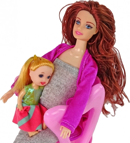Outre la poupée principale, le set comprend une petite poupée fille et un mini bébé, chacune avec ses propres détails et dimensions.
