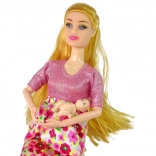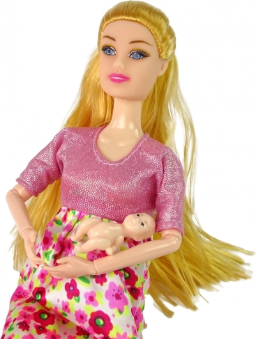 Cette belle poupée enceinte, avec de longs cheveux blonds et une ravissante robe rose à motif floral, apporte magie et style au jeu. Le ventre peut être facilement tourné pour devenir plat. Idéale pour les petites filles qui aiment les poupées et inventer des histoires enchantées.