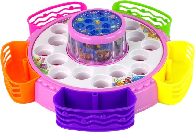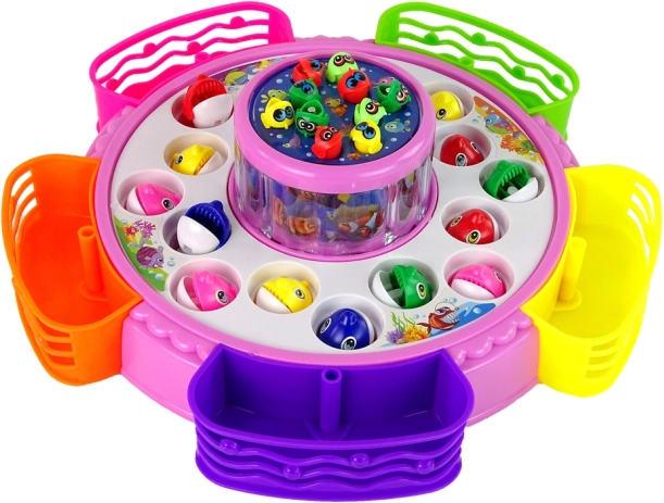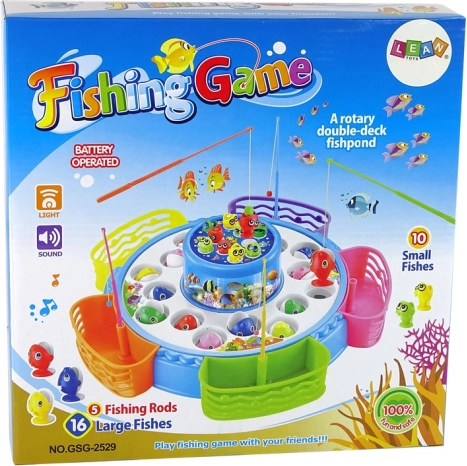 Lancez la fête avec ce jeu de pêche interactif ! Après l’allumage, le plateau de jeu tourne, s’illumine et joue des sons, tandis que les joueurs attrapent les poissons colorés à l’aide des cannes. Les différentes tailles de poissons et de cannes (y compris les cannes magnétiques) apportent variété et défi pour les petits comme pour les plus grands.