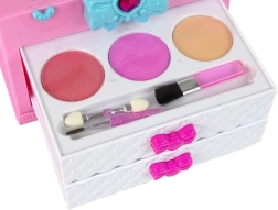 Cette mallette élégante ornée de petits nœuds décoratifs renferme tout ce dont les petites stylistes ont besoin : 11 fards à paupières, 4 gloss pour les lèvres, 3 pinceaux et 3 vernis à ongles colorés. Le couvercle supérieur avec miroir s’ouvre facilement et les deux tiroirs permettent un rangement clair des trésors.