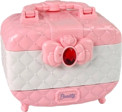 Une élégante mallette cosmétique pour enfants, rose et blanche, idéale pour les petites passionnées de maquillage et de jeux créatifs. Ses dimensions compactes permettent de l’emmener partout. À l’intérieur, vous trouverez trois tiroirs remplis de maquillage et d’accessoires, un miroir et deux boîtes surprises. Richement équipée, agencement pratique et mallette légère avec poignée garantissent des heures de divertissement.