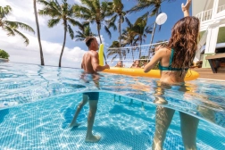 Le pack comprend un cadre flottant, un filet, un ballon de volley gonflable et une rustine de réparation – il suffit de gonfler et de jouer.