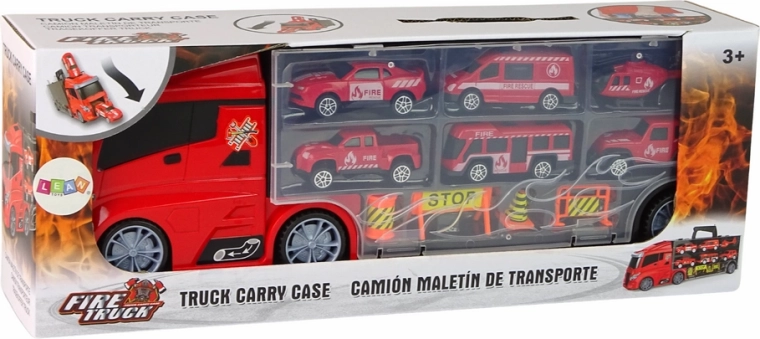 Le transporteur est un véhicule inspiré d’un camion de pompiers, doté d’un espace de rangement pour les véhicules, qui incite à imaginer ses propres aventures. Sur l’autre côté de la remorque se trouve un compartiment spécial pour ranger d’autres véhicules et accessoires, ce qui permet d’avoir toutes les pièces au même endroit et d’éviter d’en perdre. Les 6 véhicules liés à la lutte contre les « incendies » stimulent un jeu créatif dans un environnement réaliste.
