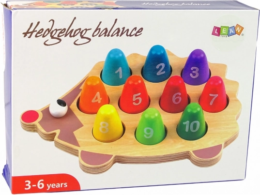 Le paquet comprend un hérisson en bois et 10 chevilles colorées. Dimensions du hérisson : 24,5 × 1 × 16 cm ; chevilles : 3 × 4 × 3 cm ; emballage : 26 × 5,5 × 19 cm. Convient aux enfants à partir de 3 ans.