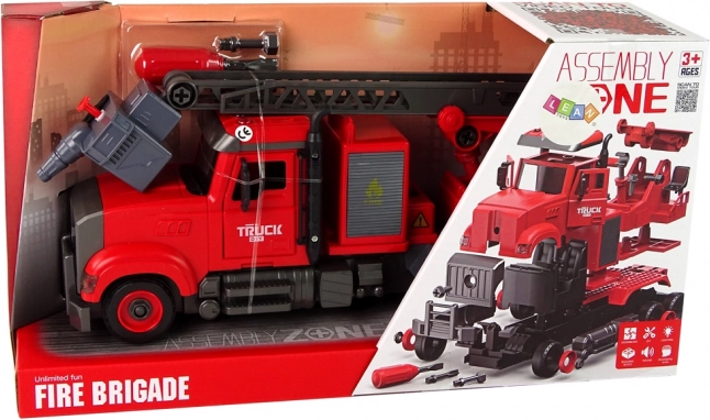 Les boutons rouges déclenchent 4 sirènes différentes et des effets lumineux. Le réservoir d’eau renforce le réalisme des « opérations d’extinction ».