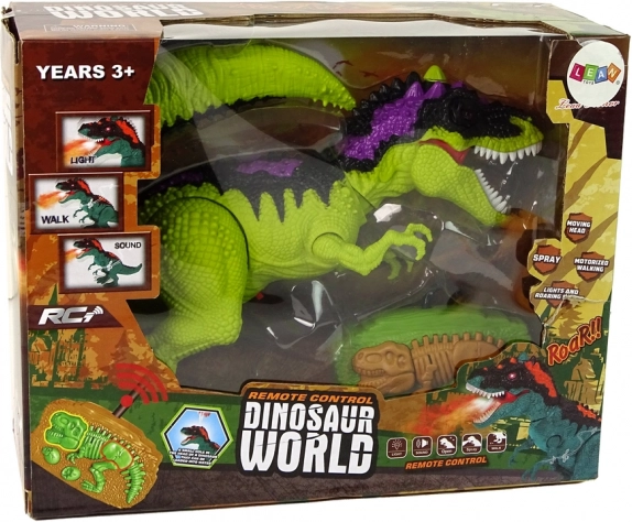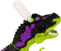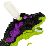 Sur la tête du dinosaure se trouve une ouverture dans laquelle vous pouvez verser de l’eau à l’aide du flacon fourni. Grâce à un bouton sur la télécommande (fonctionne avec 2 piles AA - non incluses), vous pouvez expulser de la vapeur par sa bouche pour simuler un souffle de feu. L’ensemble comprend également une télécommande en forme de bloc de dinosaure, avec laquelle vous pouvez contrôler son déplacement vers l’avant.