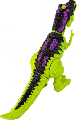 Le dinosaure télécommandé de couleur verte est un dinosaure dynamique fonctionnant avec 3 piles AA de 1,5 V (non incluses, à insérer dans la queue), ce qui lui confère un comportement réaliste. Il émet une lumière rouge et des sons caractéristiques de dinosaure, créant un effet impressionnant.