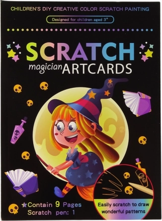 Ce set magique offre aux enfants des heures de divertissement créatif. Le coffret contient 9 images à gratter qui dévoilent, une fois la couche noire retirée, de chatoyants motifs de sorcières. Une technique simple qui encourage patience, concentration et créativité.