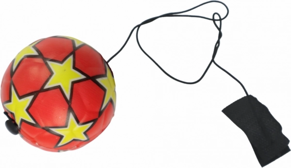 Ballon de football pour enfants en PU résistant avec élastique extensible et fermeture velcro pour un attachement facile et l'entraînement aux rebonds. Diamètre compact de 6 cm, couleur rouge vive avec étoiles et construction sûre pour jouer en intérieur comme en extérieur, dès 3 ans.