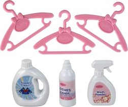 3 robes, 3 cintres et 3 flacons de « détergent » complétés par un panier à linge – tout pour une expérience de jeu domestique complète.