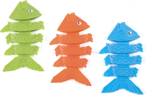 Les poissons sont fabriqués en plastique durable sans latex, ce qui assure sécurité et longue durée de vie. Leurs dimensions sont de 11 cm x 6,5 cm x 1 cm et conviennent idéalement aux petites mains. L'ensemble est destiné aux enfants à partir de 3 ans et constitue un excellent complément aux jeux aquatiques.