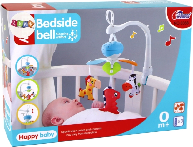 Notre beau carrousel pour enfants au-dessus du berceau offre à votre enfant non seulement de l'amusement, mais aussi une stimulation sensorielle. Grâce à son contrôle, vous pouvez ajuster la hauteur du carrousel. Sur le carrousel sont suspendus trois amis en peluche – zèbre, girafe et dinosaure rouge, qui tournent une fois lancés, captivant et apaisant l'enfant.