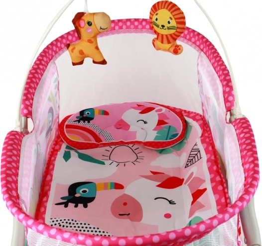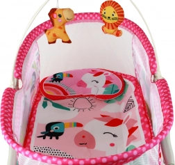 Ce lit rose avec des motifs d'animaux joyeux offre un espace sûr et apaisant pour se reposer.