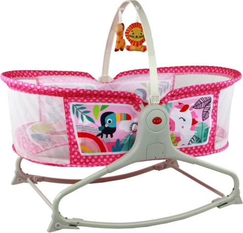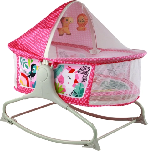 Le lit bébé multifonction avec balançoire 2-en-1 offre non seulement un espace confortable pour dormir, mais aussi un coussin et une balançoire en un. La couleur rose crée un environnement amical pour les enfants et grâce au filet et à la toiture, l'enfant est protégé des insectes et du soleil, permettant un sommeil paisible à l'air frais. La possibilité de transformer la balançoire en lit stable en dépliant les pieds offre une flexibilité supplémentaire.