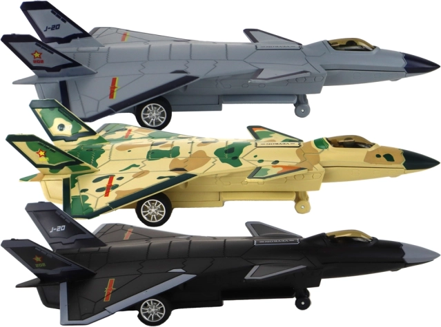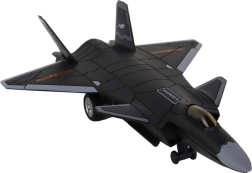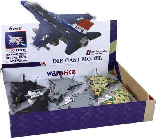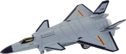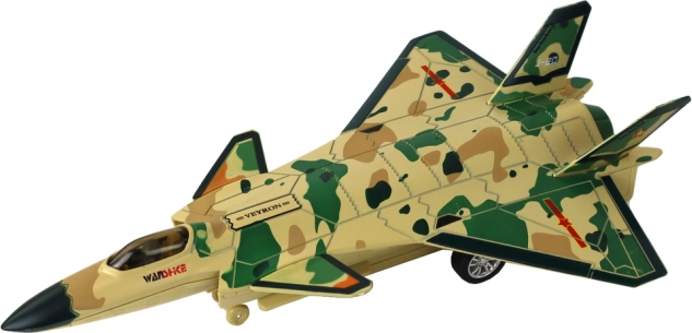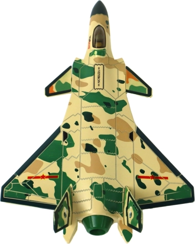 Découvrez un modèle réaliste de chasseur de 23 × 14 × 7 cm qui combine propulsion à friction (pull-back) avec effet vapeur, lumières et sons. Construction plastique robuste, roues en caoutchouc pour une conduite fluide sur le sol et cockpit détaillé avec pilote garantissent de longues heures de jeu créatif.