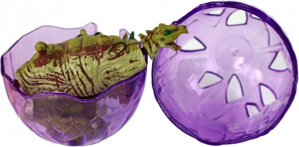 Un œuf en plastique transparent de 9 × 6 × 6 cm cache une figurine de dinosaure réaliste, visible avant même l’ouverture. L’œuf s’ouvre facilement et sert également de boîte pratique pour ranger le jouet – parfait en voyage comme dans la chambre des enfants.
