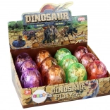 Dans chaque œuf se trouve un squelette de dinosaure en plastique jaune facile à monter – amusement et apprentissage réunis.