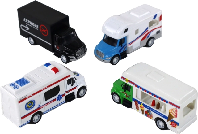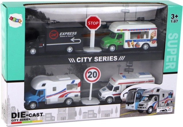 .Ce set comprend un camion noir, un camion de glace sur roues, un camping-car prêt pour l’aventure et une ambulance pour imaginer des missions de sauvetage spectaculaires. Chaque véhicule est fidèlement reproduit à l’échelle 1:87, lui conférant un aspect réaliste et un charme unique.