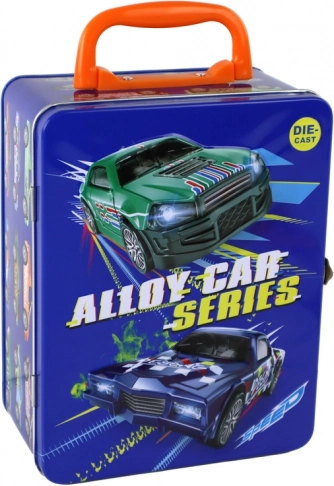 Il comprend une valisette métallique stylée de couleur bleu foncé avec des motifs de voitures de sport, une fermeture métallique et une poignée rabattable. À l’intérieur, vous trouverez 18 cases pour un rangement ordonné des modèles ; vous pouvez placer vos pièces favorites dans 6 d’entre elles. Un rangement sécurisé protège les voitures lors du transport et du stockage.