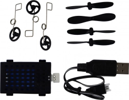 La lumière colorée intégrée améliore la visibilité au crépuscule. La boîte comprend un chargeur USB, des hélices de rechange et un ensemble d’accessoires complet.