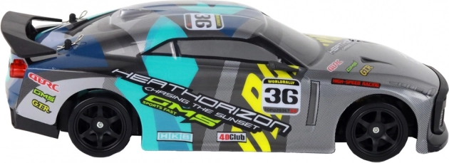 Cette voiture RC sportive combine vitesse, stabilité et précision de pilotage. Sa carrosserie aérodynamique, ses pneus en caoutchouc et sa transmission intégrale assurent de l’assurance dans les virages comme sur les surfaces exigeantes. La stabilisation électronique (ESP) avec gyroscope aide à corriger les dérives et à conserver la trajectoire idéale même à haute vitesse.