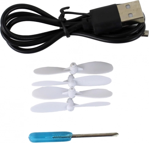 - Pack complet – avion, télécommande, batterie, câble, 4 hélices, manuel.