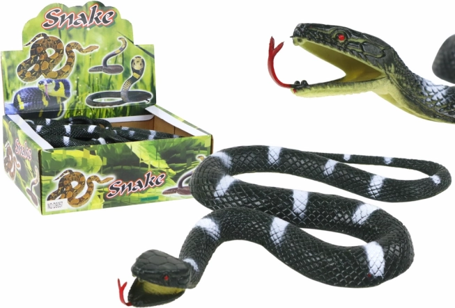 Le serpent en caoutchouc noir à rayures blanches est un jouet idéal pour les enfants, qui pourront s’amuser pendant de longues heures. De plus, sa finition réaliste et sa conception sûre, sans bords tranchants, en font également un accessoire adapté aux adultes, par exemple comme décoration ou objet farceur. Ce serpent peut être utilisé comme outil créatif pour inventer des histoires et des jeux au parc, dans le jardin ou sur la plage.