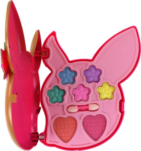 À l’ouverture de la palette, vous découvrirez cinq fards en forme de petites fleurs de différentes couleurs – violet, jaune, rose, vert et bleu. De plus, la palette contient deux grands fards roses en forme de cœur, qui vous permettent d’expérimenter votre look. Cet ensemble offre de nombreuses possibilités pour créer un maquillage fabuleux.