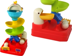 Ce jeu de billes interactif offre aux enfants une piste colorée d’environ 36 cm de haut, sur laquelle roulent des billes en forme d’œufs. Le poussin au sommet ajoute des stimuli sonores qui éveillent la curiosité et aident à développer les compétences cognitives.