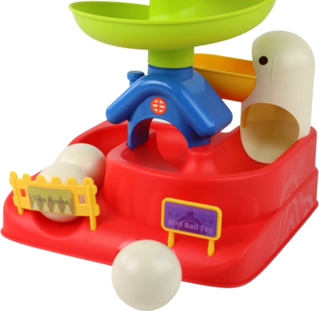 Grâce aux couleurs contrastées et aux sons agréables des billes–œufs, le jouet stimule parfaitement la vue, l’ouïe et le toucher. Les enfants exercent leur patience, leur concentration et leur compréhension de la relation de cause à effet – je lance la bille, j’observe sa course et j’écoute son cliquetis.