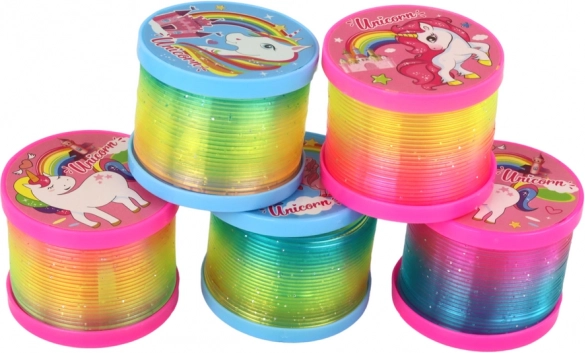 Ressort arc-en-ciel amusant avec motif licornes et LED intégrée pour un effet lumineux magique. Grâce aux disques aux extrémités, il ne s’emmêle pas, brille parfaitement dans l’obscurité et offre plein de divertissement aux enfants dès 3 ans. Certification CE et norme EN71 pour un jeu en toute sécurité.