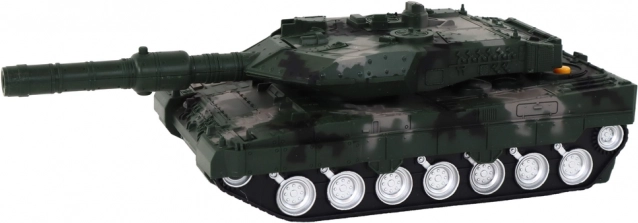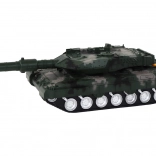Le tank RC est conçu avec un camouflage vert détaillé, imitant un véritable tank militaire pour un jeu réaliste.
