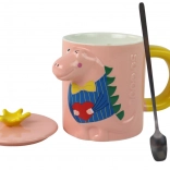 Mug en céramique avec couvercle et cuillère motif dinosaure rose 400 ml