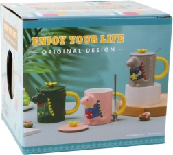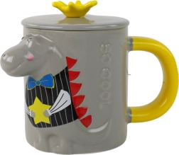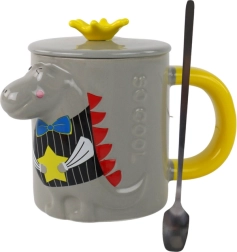 Adorable mug d’une capacité de 400 ml en céramique de qualité avec un motif dinosaure 3D, un couvercle en forme de couronne pratique et une cuillère en métal. Excellent cadeau pour enfants et adultes, idéal pour thé, café et cacao.
