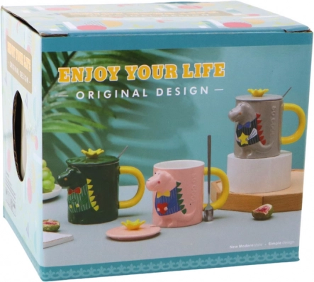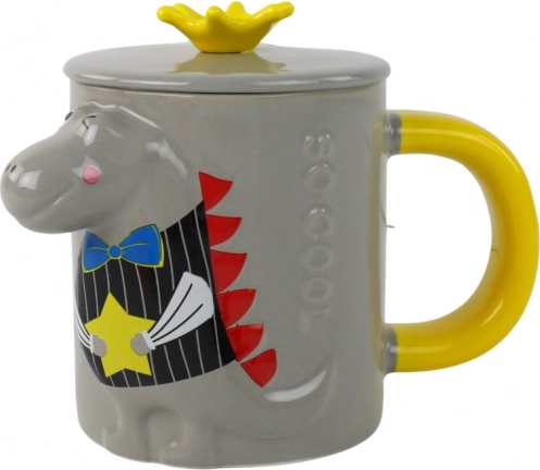 Ce mug design en céramique de couleur grise séduit par un relief 3D de dinosaure aux couleurs vives. Une anse jaune confortable et une glaçure lisse assurent un usage agréable au quotidien, à la maison, au bureau ou à l’école.