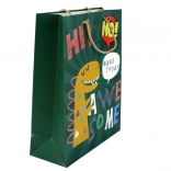 Sac cadeau en papier élégant de couleur vert foncé avec un adorable motif de dinosaure et une subtile touche pailletée. Grâce aux anses en corde solides, le transport est confortable et sécurisé. Parfait pour les anniversaires, les fêtes et les goûters d’enfants – votre cadeau aura un effet WOW immédiat et une présentation originale.