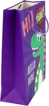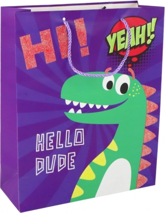 Ce sac cadeau attire immédiatement l’attention grâce à son motif de dinosaure ludique et sa couleur violette marquée. Le papier de qualité et les poignées torsadées en cordon robustes garantissent un transport confortable et sécurisé. Les accents scintillants apportent une touche festive, faisant du sac une partie intégrante de la surprise.