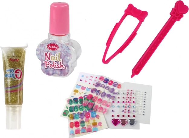 - Tips pour enfants, autocollants, vernis/paillettes et outils de base pour la décoration des ongles